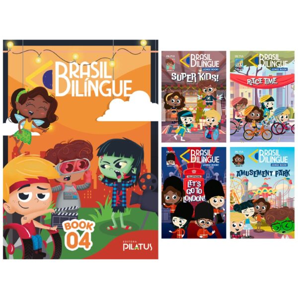 VERSÃO DIGITAL: MATERIAL DIDÁTICO E PARADIDÁTICO – BRASIL BILÍNGUE – BOOK 4 (4ºANO) + Coletânea de apoio ao desenvolvimento de língua estrangeira (Kit com 4 gibis, sendo 1 por bimestre) ( 4º ano – Anos Iniciais). Livro de inglês para crianças de 9 anos (4° ano). Com textos adequados para a idade, com atividades que trabalham a oralidade e de revisão, oferece estudos das formas afirmativas, negativas e interrogativas, ampliando cada vez mais o repertório e o contato com o a língua inglesa.